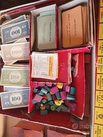 Monopoli anni '40 edizione quadrata, scatola originale in condizioni discrete. Contiene soldi, tavolo da gioco, costruzioni, carte degli imprevisti e probabilità, carte delle proprietà e pedine.