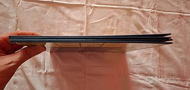 Le ammaccature agli angoli erano presenti già al momento dell'acquisto essendo un fondo di magazzino difettoso, quella a sinistra ha provocato un piccolo strappo sulla scatola interna bianca, che poi nel corso del tempo con la polvere e l'umidità si è esteso.