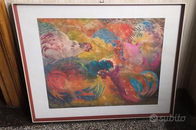 Olio su carta, "Galli" Saccomani Giovanni (Udine 1900-1966), carattere espressionista. Opera: 59.5x47 Con cornice: 76x61 Non spedisco