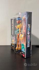 Bambola Monster High Cleo De Nilo, nuova e ancora sigillata nella sua confezione originale. - La confezione include la bambola Cleo De Nilo. - Accessori inclusi nella confezione. - La bambola presenta dettagli ispirati alla mitologia egizia.