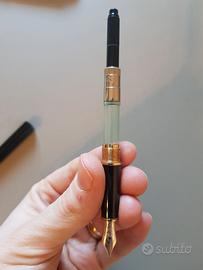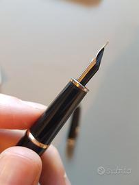 Stilografica montblanc meisterstuck 144, accanto al numero di serie è marchiata w germany, quindi prodotta prima del 1989. Complessivamente in ottime condizioni con lievi segni estetici sui dettagli dorati, pennino ottimo e nessun segno particolarmente evidente sul corpo in resina. La penna è stata ferma per un periodo,quindi è stata appena lavata e ripristinata professionalmente, scrive come se fosse nuova. Non ho la confezione originale, per chi si trovasse nel torinese per i prossimi sei mesi è attiva la garanzia del negozio che ha effettuato la pulizia. Per qualsiasi informazione sono a disposizione, ascolto offerte ragionevoli