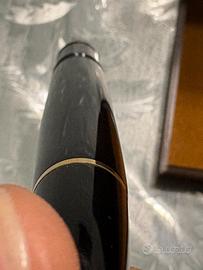 Stupenda penna stilografica Montblanc modello 146 risalente agli anni 80, monta un pennino di unico colore da 14 C dal tratto M. La penna si presenta in ottime condizioni, il pennino sale e scende con estrema fluidità, perfettamente funzionante. Non si segnalano crepe ma potrebbero e dico potrebbero esserci micro graffi. Sulla parte del ferma taschino non è presente ancora il codice di serie essendo una penna risalente agli anni 80. Venduta con scatola un po usurata e libricino istruzioni.