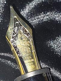 •Pennino in oro 18 carati, rifinito a mano e con intarsi in platino.