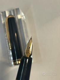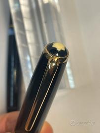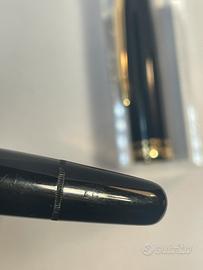 Stilografica Montblanc 254 in resina Black e finiture gold, anni ‘50 Germany. Pennino oro 585 F flex , sistema a pistone di coda, funzionante. Lunghezza cm. 13