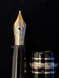 MONTBLANC penna stilografica Meisterstück Hommage à Frédéric Chopin in resina bordeaux e metallo laminato oro giallo ref. P145 nuova. Pennino oro 14Kt medio, materiali: metallo laminato oro, resina. + Montblanc 105190 - Flacone d'inchiostro Mistery black (nero) 60 ml + Montblanc ink cart mystery black