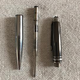 Metto in vendita prestigiosa penna a sfera Montblanc Meisterstück Solitaire originale. Questo modello si distingue per il raffinato cappuccio realizzato in Ematite (pietra naturale dal caratteristico riflesso grigio metallico) e il fusto con finiture platinate. Si tratta di un pezzo da collezione, molto più solido e pesante rispetto alle classiche versioni in resina, ricercato per il suo design iconico e i materiali nobili. Stato: Buone condizioni generali, lievi segni del tempo dovuti all'utilizzo. • Corredo: Venduta senza scatola e documenti (prezzo già scontato per questa mancanza).