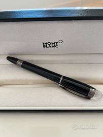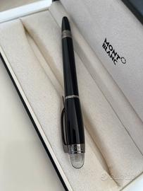 Il design punta su un contrasto elegante: corpo e cappuccio in resina nera “preziosa”, rifiniture in metallo placcato platino, e il distintivo emblema Montblanc sotto una cupola trasparente che fluttua (“floating emblem”).