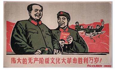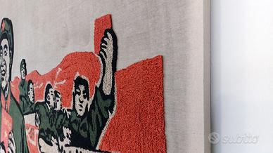 Monumentale e importante arazzo vintage di propaganda cinese a ricamo raffigurante Mao Tse Tung e Lin Biao. L'opera è realizzata in Cina, nella provincia dello Yunnan, nel 1968 (la data è in basso a destra) con una tecnica di ricamo tradizionale ed è un raro esempio di arte propagandistica dell'epoca della Rivoluzione Culturale. Per le grandi dimensioni e la qualità del ricamo si può considerare un caposaldo di questo filone artistico. Intelaiata con telaio nuovo, dimensioni L 3,8 m H 1,8 m.