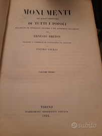 Vendo opera di Pietro Giuria "Monumenti di tutti i popoli " del 1844, composta da due tomi. Misure : 28x20x4. Tel: 3401454335