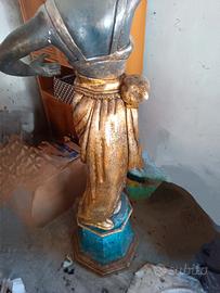 bellissima scultura stile barocco veneto, su legno decorato a mano, risalente al XVIII secolo, rappresenta il moto di Venezia 1750-1800, presenta piccole malformazioni del tempo, ma non ha rotture di rilievo, volutamente non l ho pulito ne spolverato, allego giusto per far capire il valore che può avere io chiedo così 1100€ per trasporto o spedizione ci si accorda ,non accetto perdite di tempo ne proposte ridicole.. altezza 1,75mt x 45 cm