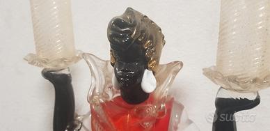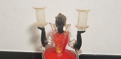 Moro veneziano porta candele in vetro di murano , in ginocchio , con abito rosso , bianco e oro , alto 38 cm × 15× 20 cm, peso kg 3,8, in ottime condizioni , no rotto, no scheggiato , vendo a 170 euro con consegna a mano a vignola (MO)