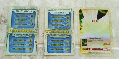 Vendo morphing card di Dragon Ball delle sorprese Mr Day Parmalat: 1) Shenron Li Shenron (num 10), carta rara ma retro rovinato: 9 Euro; 2) Baby Baby Vegeta (num. 7), retro rovinato: 2 Euro; 3) Lamincard Drago Shenron (numero 84), 1 Euro. In blocco 10 Euro. Spedizione prioritaria. +++Contattatemi per informazioni su pagamento e spedizione+++ +++Molte recensioni presenti sul mio profilo Subito+++