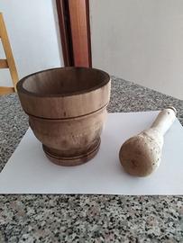MORTAIO CON PESTELLO IN LEGNO, ANTICO