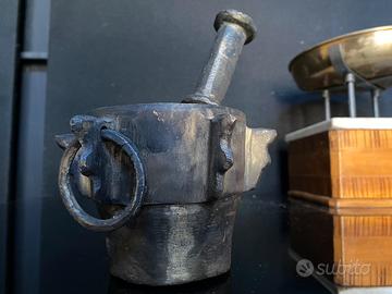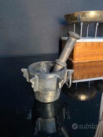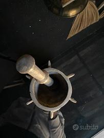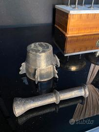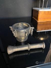 Mortaio antico in bronzo ottone compreso di pestello Mortaio da farmacista o erboristeria Misure h 10 cm diametro 11 cm Pestello lunghezza 19 cm diametro 4 cm