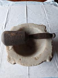 Mortaio in marmo con pestello in legno databile '700