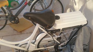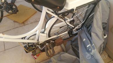 colore bianco perfettamente rimesso a nuovo parte al 1 colpo è x chi non conosce è una vecchia bicicletta a cui è stato aggiunto un motore. é un motore garelli uscito cosi dalla fabbrica