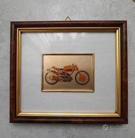Moto Guzzi 500 cc Bicilindrica 1933 - 1951 Omobono Tenni quadretto 16 cm X 14 cm foglia d'oro 22 hi.