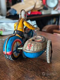 Non è solo un giocattolo. È un pezzo di storia. Vendo moto vintage in latta con sidecar, anni ’60 circa, originale e mai restaurata. FUNZIONANTE!!! Un oggetto che racconta un’epoca… e che oggi è sempre più difficile trovare. ✨ Colori ancora vivi ✨ Dettagli autentici d’epoca ✨ Perfetta come complemento d’arredo vintage o da collezione Le imperfezioni e la ruggine non sono difetti: sono la sua firma, il segno del tempo che lo rende unico. Ideale per: collezionisti amanti del vintage arredamento industrial / retrò Se cerchi qualcosa di anonimo, non fa per te. Se cerchi un pezzo con carattere… scrivimi. PREZZO LEGGERMENTE TRATTABILE O BARATTO CON ALTRO DI MIO GRADIMENTO