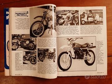 In vendita 5 riviste tematiche moto anni 70. Si dettaglia. MOTOCICLISMO Edisport: numeri 12 del 12/1977 (Salone di Milano/ prove Benelli, Ducati, Piaggio, Honda/Aspes Navaho/Gerosa 50/Motocross Mondiale/Velocità mondiale/Mercato usato) e 10 del 10/1978 (Salone di Colonia/prove Honda Hawk, SWM Guanaco 320, Laverda LZ 125/Gilera 50 GR 2/Moto Guzzi V7/GP Nurburgring, Cecoslovacchia, Assen/Salone di Londra/Mercato nuovo ed usato). MOTOCROSS Ed.Octopus numero 5 del 05/1977 (Mondiale 250 in Spagna/Lombardore Mondiale 500/Wolsink-De Coster- Moiseev/Prova Ancillotti 125 regolarità/Regolarità nazionale a Bobbio). LA MOTO Edigamma numeri 7 del 7/1977 (SWM 125 RS/Honda Four 750 K/Gilera 125 TG/Simonini 175-Mistral 7 V/GP Spagna/Motocross mondiale 500/Mondiale 250 Moiseev/Valli Bergamasche) – 5 del 05/1978 (Malanca Duepiù/Honda 125 S/BMW R 100 RS/Simonini 125 Long/Aprilia MX 250/Gilera 125 TG1/GP Venezuela/Formula Laverda e Honda/Motocross mondiale e Campionato italiano 125/Motomercato). Condizioni di conservazione: buone. Ben visibili segni del tempo e della lettura; non per collezionisti esigenti; consigliati per immagini, curiosità, consultazione. Rivista Motocross con alcune pagine che presentano tagli. Confrontare corredo fotografico che fa fede ai fini della offerta. Spedizione piego di libri raccomandata.