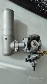 Motore a scoppio per aeromodelli completo di silenziatore. Ancora nella confezione originale, mai usato.