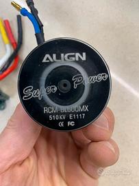 Motore Brushless Align RCM-BL600MX 510KV Condizioni: usato, perfettamente funzionante, testato prima della rimozione. Ideale per: elicotteri radiocomandati di classe 550–600. Descrizione prodotto: Vendo combo composta da: •Motore brushless Align RCM-BL600MX 510KV – Super Power Series, ad alte prestazioni, con ottimo bilanciamento e rendimento. Specifiche tecniche (motore): •Modello: Align RCM-BL600MX •KV: 510KV •Potenza massima: ~2000W •Albero: 5mm •Applicazioni: T-Rex 550 / 600E / 600L Dominator / altri modelli compatibili