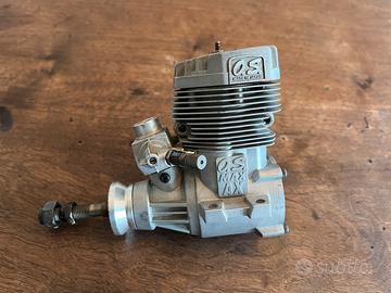 Motore Os 120 ax, poco usato ed in buone condizioni, ottima potenza e compressione. Corredato di silenziatore standard e di raccordo a 90 gradi per posizionarlo in vrrticale. Due alette di raffreddamento del silenziatore sono state limate per problemi di ingombro nella naca motore