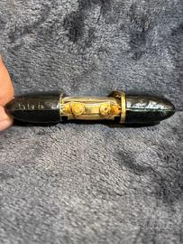 Orologio in buone condizioni vintage, con segni del tempo visibili sulla cassa e sulla pelle, ma complessivamente ben conservato.