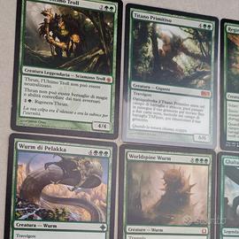 1Thrun, the last troll(Mirrodin Assediato, NM ITA) 1Titano Primitivo (M12, NMITA) 1Regina dei calabroni (M15, NM ITA) 1xWurm di pelakka (Ascesa degli Eldrazi, NM ITA) 1xWorldspine wurm (Return to ravnica, NM ENG) 1xGhalta, Primal Hunger (Rivali di Ixalan, NM ENG) 1xCourser of Kruphix(Master 25, NM ENG) 1xBestia interiore (Nuova Phyrexia, NM ITA) 1xBeast Whisperer (Gilde di Ravnica, NM JAP)
