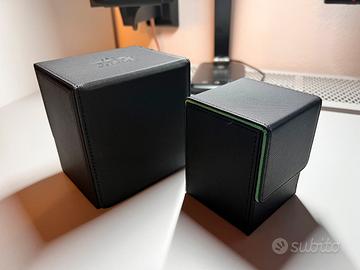 Vendo 2 portamazzi Magic come nuovi, uno per commander con cassetto, uno per mazzi normali (puo contenere un commander). In piu vendo anche Bustine Katana usate solo per qualche partita, condizioni perfette!