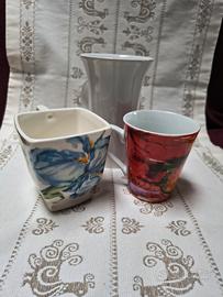 LOTTO DI. TRE. MUG VINTAGE , COMPOSTO. DA INA TAZZA QUADRATA CON COPERCHIO IN CERAMICA.