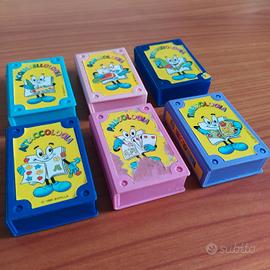 lotto di 6 scatoline VUOTE di sorpresine mulino bianco del 1995. aquerellologia gommologia evidenziologia attacco logica pausologia timbrologia