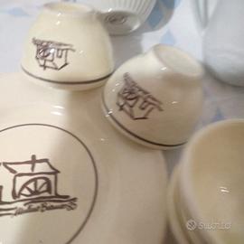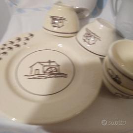 1 tazza - 1 lattiera - 1 portapane(c'è una piccola scheggiatura sul bordo come evidenziato nell'ultima foto)