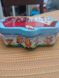 Mulino Bianco Scatola Di Latta Porta Merenda Barilla Amici Del Mulino... LA SCATOLA È IN BUONE CONDIZIONI MA PRESENTA, COME IN FOTO, EVIDENTI SEGNI DI USURA...