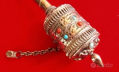 D'argento tibetano NON punzonato, decorato con minuscole turchesi e coralli incastonati