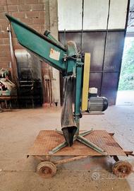 Mulino elettrico professionale macina cereali, con vasca a scivolo, fissato su carrello in metallo con ruote e ralla per rendere maneggevole lo spostamento delio stesso. Capacità produttiva da 50 a 230 kg/ h.