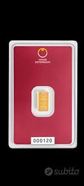 Lingotto d'oro da investimento Münze Österreich 1 Grammo Materiale: AU 999.9/1000 Oro fino Peso: 1 grammo Fornito in blister 1 pz. disponibile