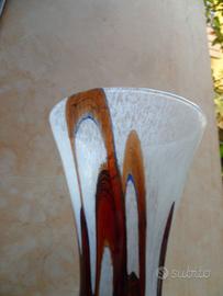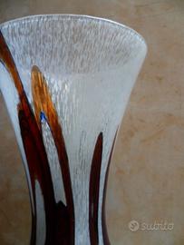 Vaso portafiori in vetro lavorato con motivi astratti tipici degli anni '60-'70, non è firmato e misura in altezza cm 35. Certo del periodo , proviene dalla casa di mio padre. Eventuale spedizione da concordare.