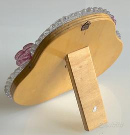 Specchio da tavolo vetro Murano 19 x 18 cm (circa) in buone condizioni estetiche, probabilmente è stato sostituito legno vecchio