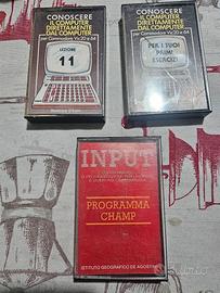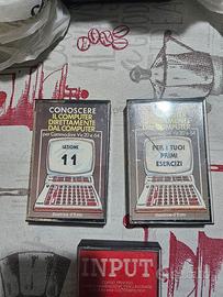 otto musicassette vintage vari cantanti, tre musicassette nuove da registrare, tre conoscere il computer