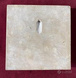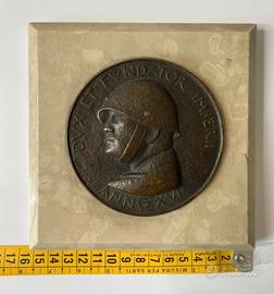 Dimensioni: medaglione in bronzo diametro cm. 9,5 / la base quadrata di marmo misura cm. 15 spessore marmo cm. 2.