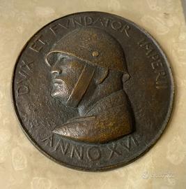 Sul bordo del medaglione iscrizione in latino: DVX ET FVNDATOR IMPERII “Duce e fondatore dell’Impero”.