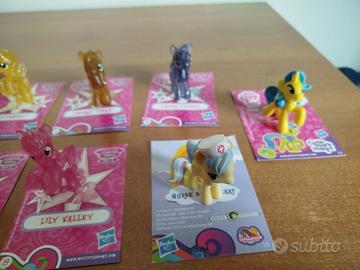 Vendo varie blind bag di My Little Pony G4 provenienti da diverse collezioni italiane. Serie Arcobaleno (Wave 9): 15) Nurse SnowHearth Serie Cutie Mark Magic (Wave 12): 15) Lemon Hearts Serie 2 (Wave 17): 2) Fluttershy 8) Apple Fritter 9) Banana Fluff 11) Cherry Fizzy 13) Sweetie Drops 16) Lucky Clover 19) Lily Valley I personaggi sono in buono stato e con ancora la carta abbinata (come visibile dalle foto). Diponibili anche singolarmente (3€).