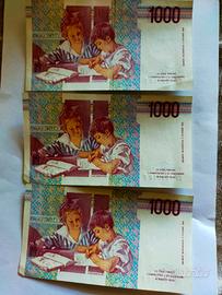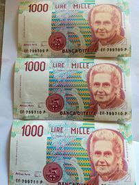 Vendon. 03 banconotae da 1000lire Maria Montessori anno 1990 non circolanti. prezzo totale di 3 banconote.