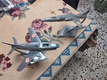 N.1 AEREO ALLUMINIO DA SCRIVANIA FIAT G.91 FRECCE TRICOLORI N.2 AEREO DA SCRIVANIA ALLUMINIO D'EPOCA F.104 STARFIGHTER SOLO MESSAGGI