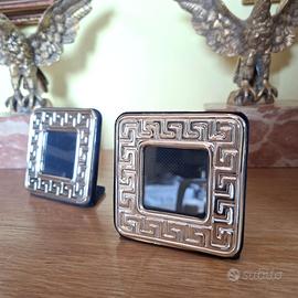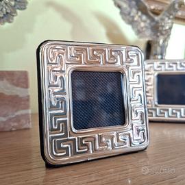 N. 2 Cornici Portafoto degli anni 70 in Argento 925 massiccio in Stile architettura greca. Nuove con scatola.