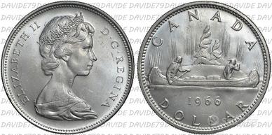 1 Dollaro canadese 1966 (canoa sul rovescio, Elisabetta II).Dati tecnici