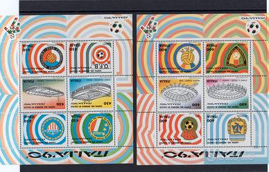 Vendo n. 3 foglietti di francobolli nuovi, emessi nell'anno 1990 dall'Italia in occasione della Coppa del mondo di calcio Italia 90, in perfette condizioni.