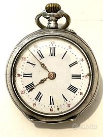 - OROLOGIO DA TASCHINO CYLINDRE REMONTOIR 10 RUBIS ARGENTO - NON FUNZIONANTE