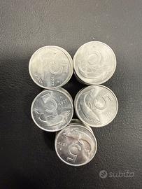 N.50 monete da 5 lire delfino 1977
