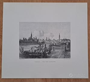 Cartellina Voyage pittoresque en Italie par M. Paul De Musset contenente n. 6 stampe in bianco e nero, rappresentanti le principali citta' italiane: Milano, Torino, Bologna, Venezia, Firenze, Roma. In perfette condizioni.